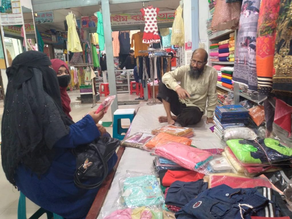 বাজার ঘুরে ঘুরে যাচাই-বাছাই করে অনেকে কিনছেন মানানসই আর সবচেয়ে ভিন্ন শাড়ীটি। ক্রেতাদের কথা মাথায় রেখে বিপণি বিতান প্রস্তুত নকশার শাড়ী নিয়ে। বাচ্চা থেকে শুরু করে বড়দের শার্ট পেন্টের দোকানেও ক্রেতাদের ভিড় চোখে পরার মতো।এর মধ্যে এবারের ঈদের আর্কশন সারারা,কাঁচা বাদাম থ্রী পিছ,থ্রী পিছের দোকান গুলোতেও বেশ ভিড় লক্ষ করা গেছে। সেই সাথে নানান ডিজাইনের থ্রী পিছও কিনতে দেখা যায় ক্রেতাদের,ঈদের বাকি খুব অল্পদিন,সেই জন্য ক্রেতারা কিনছেন কমপ্লিট থ্রি পিছ।নবাবগঞ্জ উপজেলার বাঘমারার মার্কেটের দোকানিদের সাথে কথা বললে তারা জানান,গত দুই বছরের করোনার ধকল কাটিয়ে ওঠতে,এবারের কাপড়ের দামটা একটু বেশি।কিন্তু গত বছরের তুলনায় এবারের বেচাকিনা অনেকটা ভালো।