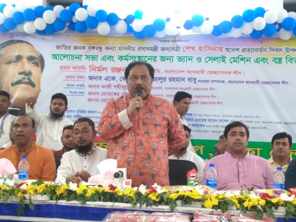 প্রধানমন্ত্রী শেখ হাসিনার স্বদেশ প্রত্যাবর্তন দিবস’ উপলক্ষে ঢাকার নবাবঞ্জে আলোচনা সভা ও ভ্যান গাড়ি, সেলাই মেশিন ও বস্ত্র বিতরণ করা হয়েছে।শনিবার রাতে উপজেলা আব্দুল ওয়াছেক মিলনায়তনে এ অনুষ্ঠান করা হয়। ঢাকা জেলা স্বেচ্ছাসেবকলীগ এর আয়োজন করেন।এ সময় দোহার ও নবাবগঞ্জের নিম্ন আয়ের মানুষের মাঝে ৫টি ভ্যান গাড়ি, ১২টি সেলাই মেশিন ও দুস্থদের বস্ত্র বিতরণ করা হয়।অনুষ্ঠানে প্রধান অতিথি ছিলেন, বাংলাদেশ আওয়ামী স্বেচ্ছাসেবক লীগের সভাপতি নির্মল রঞ্জন গুহ।সভাপতিত্ব করেন ঢাকা জেলা দক্ষিণ স্বেচ্ছাসেবক লীগের সভাপতি মাহবুব বেপারী।অনুষ্ঠানের প্রধান বক্তা বাংলাদেশ স্বেচ্ছাসেবক লীগের সাধারণ সম্পাদক আফজালুর রহমান বাবু ভার্চুয়ালি যুক্ত হয়ে বক্তব্য রাখেন। বিশেষ অতিথি ছিলেন কেন্দ্রীয় সহ-সভাপতি কাজী শহীদুল্লাহ লিটন, যুগ্ম সাধারণ সম্পাদক মোবাশ্বের চৌধুরী, সাংগঠনিক সম্পাদক মেহেদী হাসান মোল্লা।বক্তব্য রাখেন কেন্দ্রীয় স্বেচ্ছাসেবক লীগের মানবাধিকার বিষয়ক সম্পাদক শহীনুর রহমান শাহীন, তথ্য ও গবেষণা সম্পাদক আবুল কালাম আজাদ, সাংস্কৃতিক বিষয়ক সম্পাদক হাসান মতিউর রহমান, উপ-দপ্তর সম্পাদক রাহুল দাস, উপ-প্রবাসী কল্যান বিষয়ক সম্পাদক দেলোয়ার হোসেন।ঢাকা জেলা দক্ষিণ স্বেচ্ছাসেবক লীগের যুগ্ম সাধারণ সম্পাদক অ্যাড. কামরুজ্জামানের সঞ্চালনায় আরও বক্তব্য রাখেন, জেলা মহিলা লীগের যুগ্ম আহবায়ক শিরিন চৌধুরী, ঢাকা জেলা দক্ষিণ স্বেচ্ছাসেবক লীগের শশাঙ্ক ভ‚ষন পাল চৌধুরী, মাসুদ কামাল রানা, মনির হোসেন জিয়া, অতুল সরকার জুয়েলসহ পলাশ চৌধুরী, হাবিবুর রহমান হাবিব, এস এম খুরশিদা, মো. পলাশ প্রমুখ।